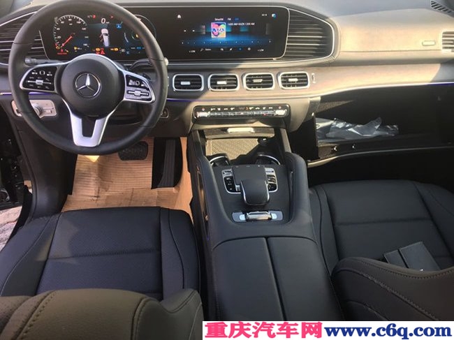 2020款奔驰GLS450美规版MBUX车机系统、带拇指控制功能的方向盘、金属拉丝饰板以及矩形空调出风口等设计的采用,使得车辆的便利性、科技感和档次感均有提升。内饰布局有了全面革新,奔驰最新车型常见的双12.3英寸中控屏+全液晶仪表盘的设计得到了沿用,极大的提升了内饰科技感。